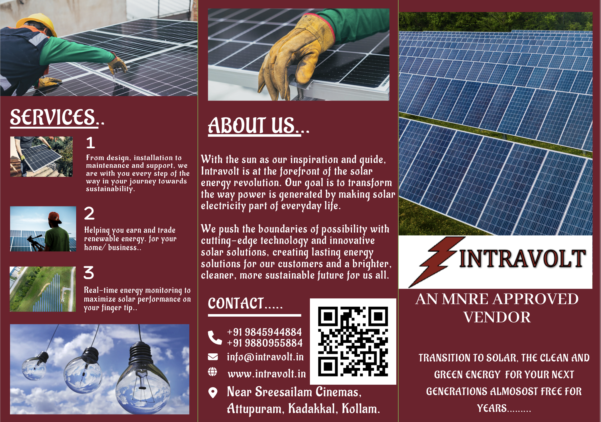 At INTRAVOLT PVT LTD, we specialize in providing top-notch electrical maintenance services and innovative solar system solutions tailored to meet the diverse needs of our clients. With a commitment to safety, sustainability, and efficiency, our experienced team is dedicated to ensuring your electrical systems operate seamlessly and your solar energy solutions maximize performance. We pride ourselves on our customer-centric approach, delivering dependable support and expert guidance to help you embrace renewable energy while maintaining your electrical infrastructure. Join us in making a positive impact on the environment and enhancing your energy efficiency today!